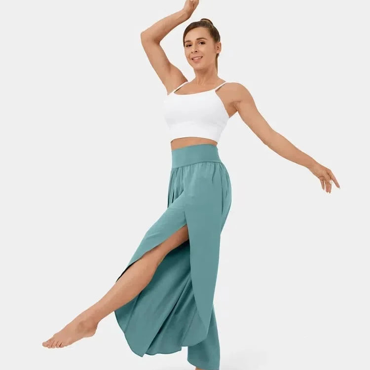 Pantaloni da yoga da donna – Vestibilità ampia e fluida – Vita alta – Spacco laterale – Tessuto traspirante