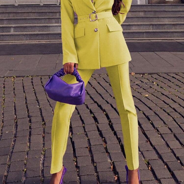 Completo da donna – Blazer doppiopetto aderente – Pantaloni eleganti slim a vita alta