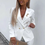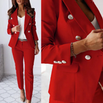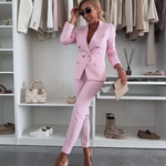 Completo da donna – Blazer doppiopetto aderente – Pantaloni eleganti slim a vita alta