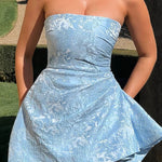 Mini abito da festa in jacquard senza spalline