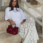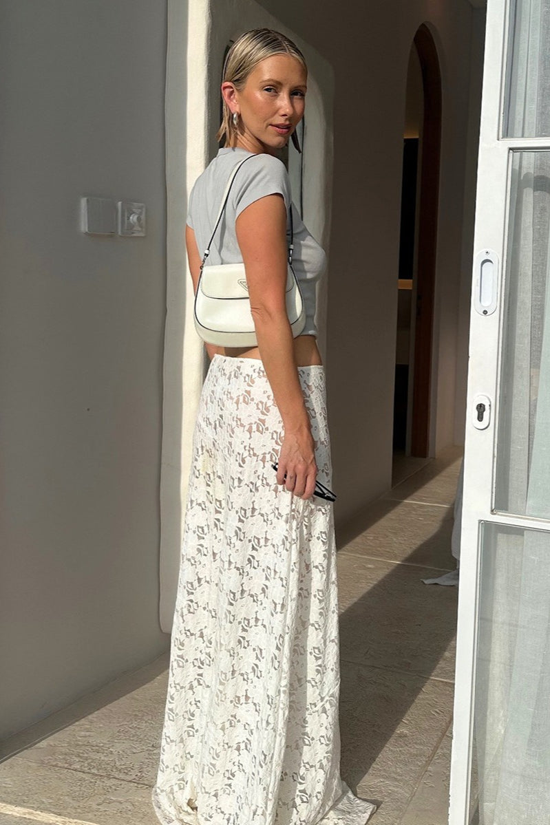 Gonna lunga trasparente in pizzo jacquard vintage a vita bassa