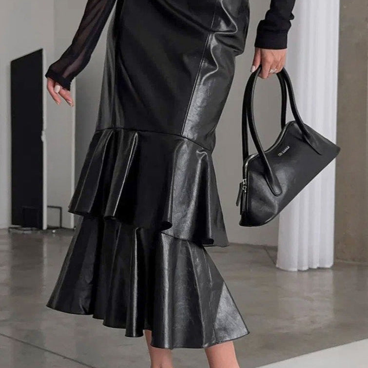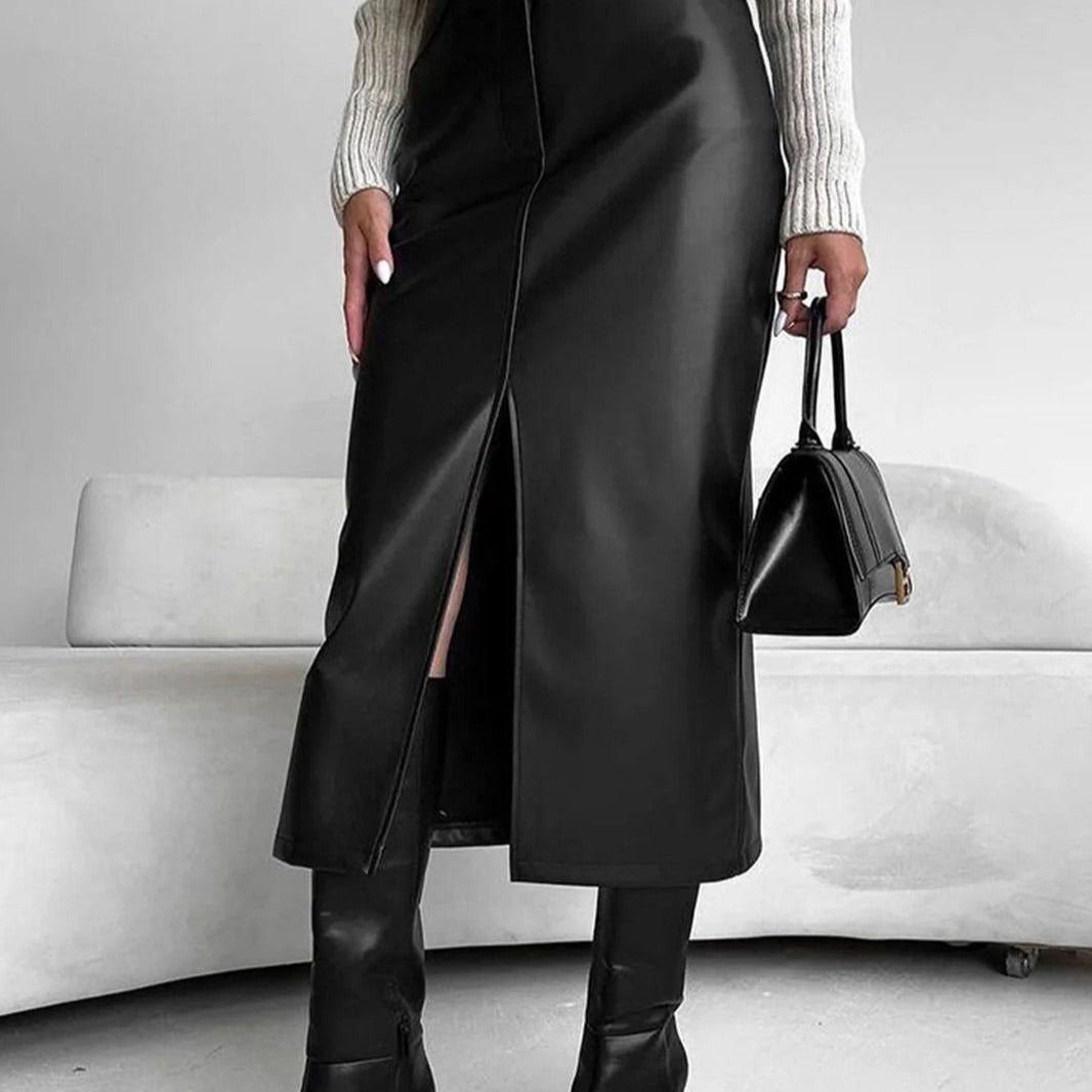 Gonna midi in similpelle vintage a vita alta con linea ad A