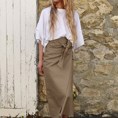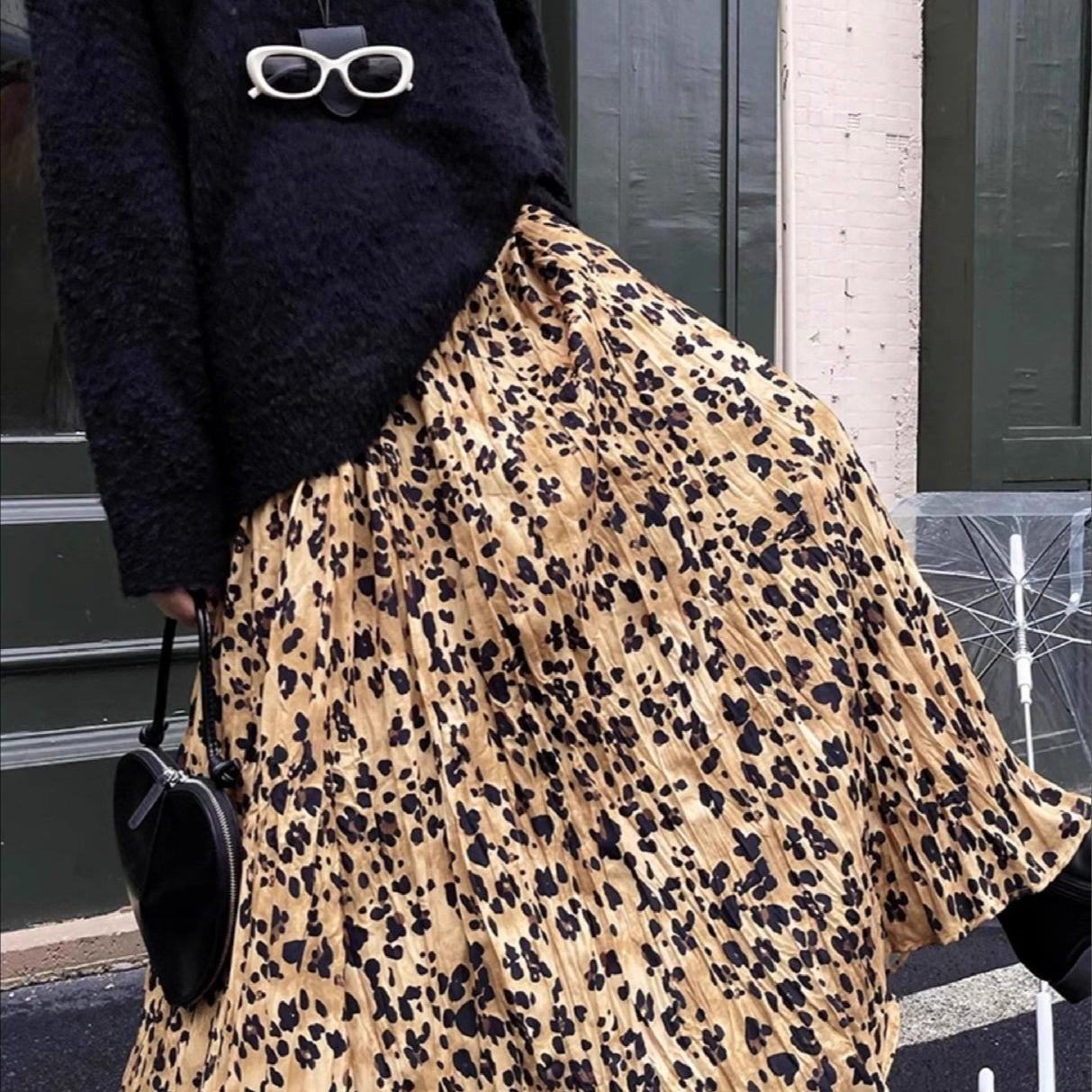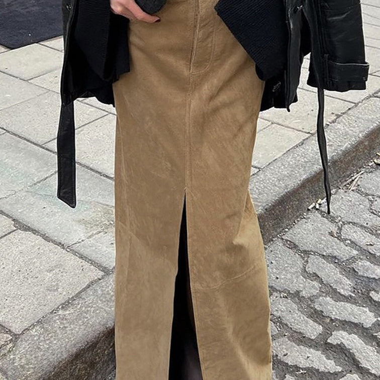 Gonna lunga vintage in pelle scamosciata a vita alta