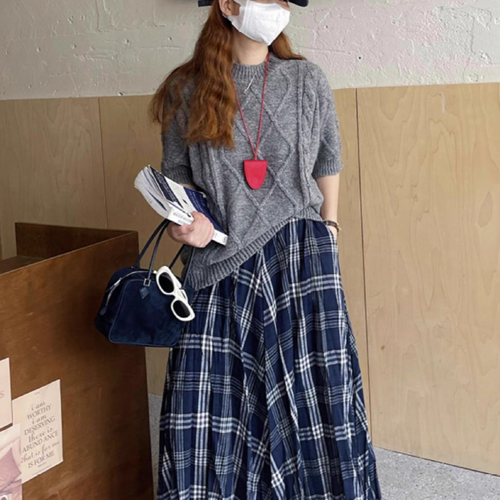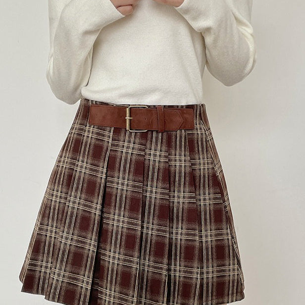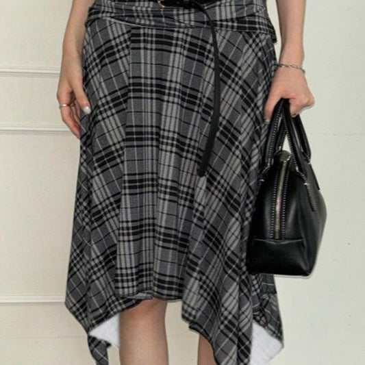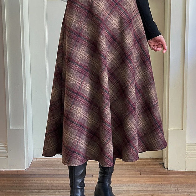 Gonna a trapezio a vita alta in stile scozzese vintage