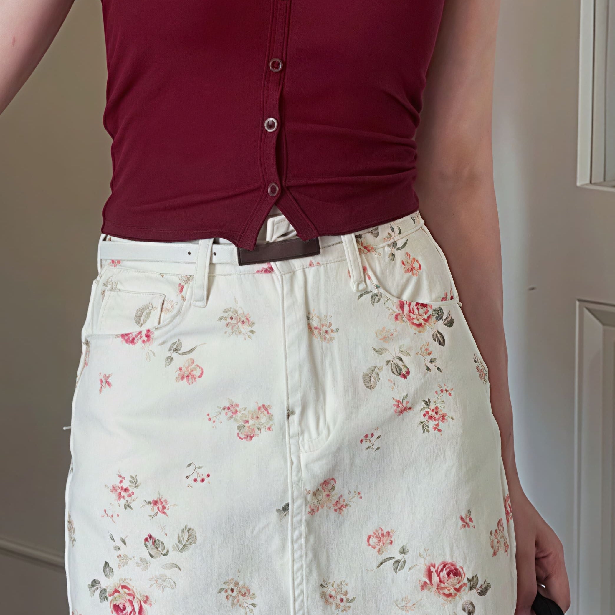 Minigonna vintage a vita alta in finta pelle scamosciata
