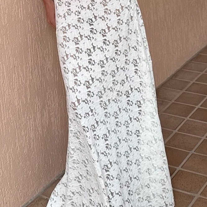 Gonna lunga trasparente in pizzo jacquard vintage a vita bassa