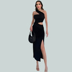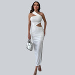 Elegante abito lungo asimmetrico monospalla con ritagli per donna