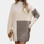 Abito in maglia da donna - Maglia - Vestibilità ampia - Collo alto - Design patchwork