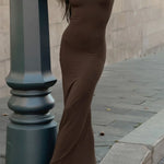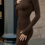 Abito lungo aderente in maglia retrò marrone