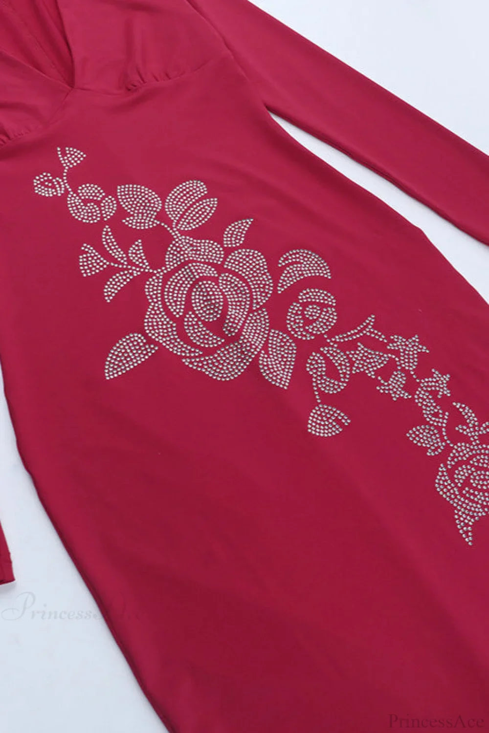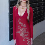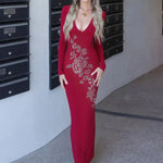 Abito lungo aderente con scollo a V e strass