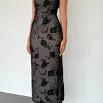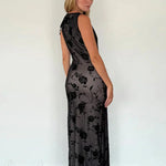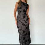 Abito lungo aderente senza maniche in rete floccata