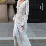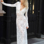 Abito lungo sexy aderente in pizzo trasparente jacquard