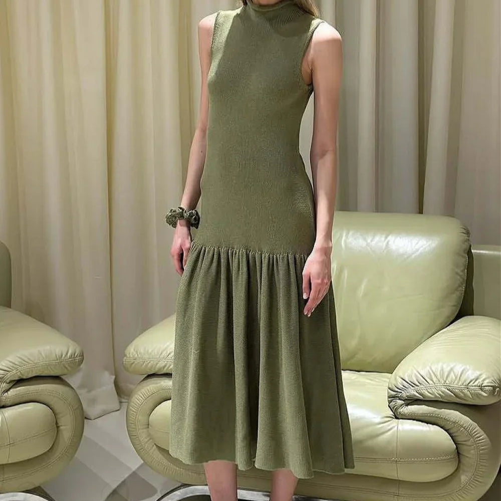 Abito lungo a maniche lunghe con vita in maglia tinta unita