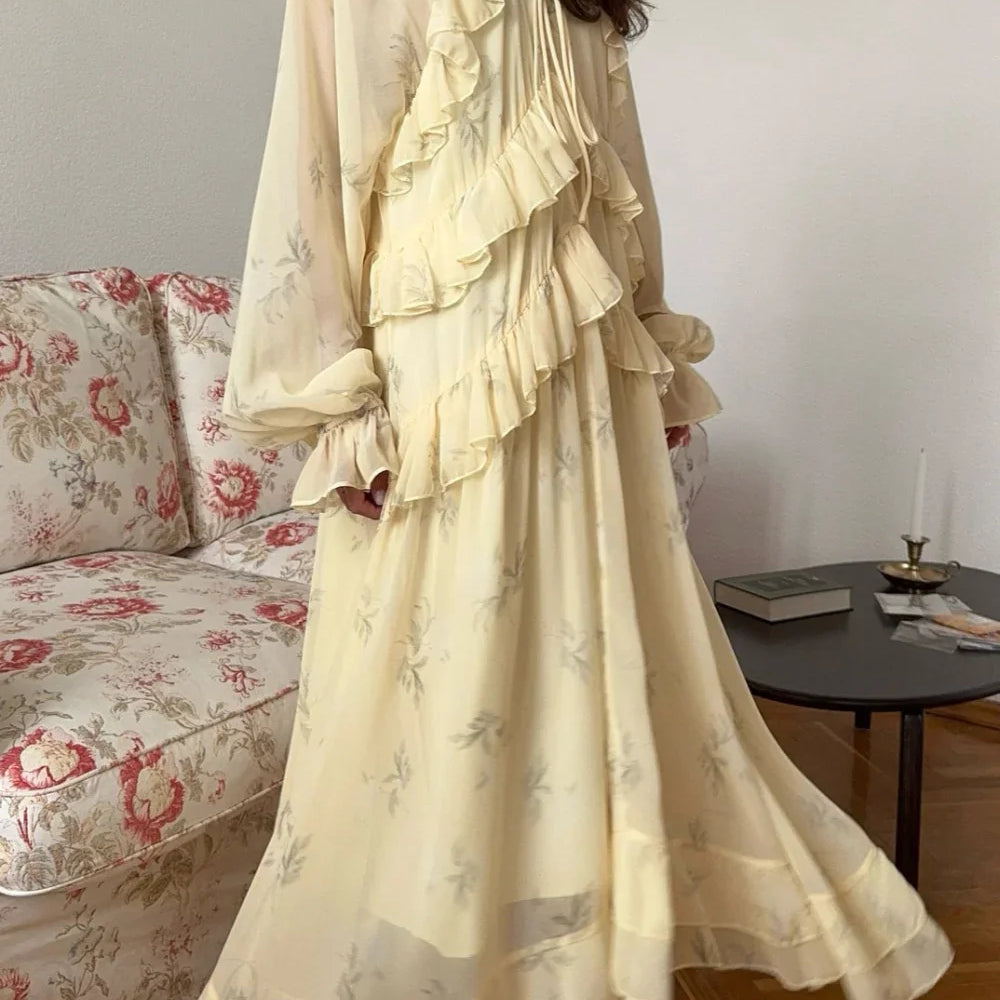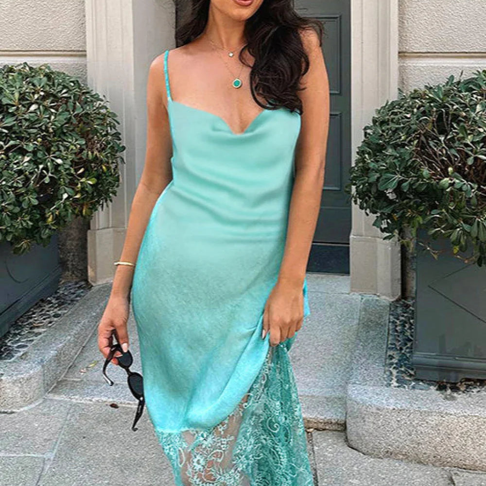 Abito lungo con spalline sottili e volant