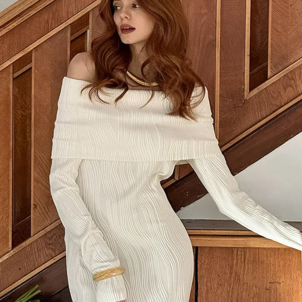 Abito lungo a sirena aderente in maglia con spalle scoperte