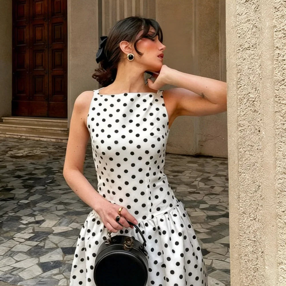 Abito lungo casual senza maniche a pois