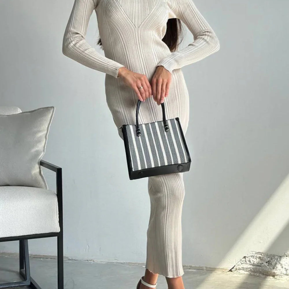Abito lungo aderente in maglia a trapezio