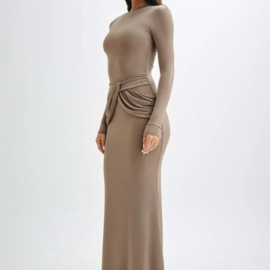 Abito lungo aderente sexy con dettagli in metallo e schiena scoperta