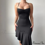 Abito midi estivo elegante senza maniche con volant sulla schiena e dettaglio annodato