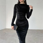 Abito midi attillato, aderente, a maniche lunghe, con volant, elegante, autunnale, perfetto per le discoteche