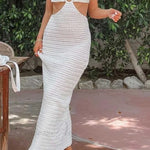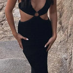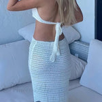 Abito traforato con lacci sulla schiena e dettagli a contrasto