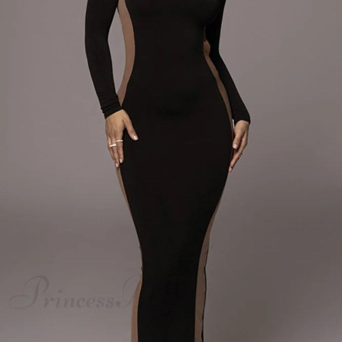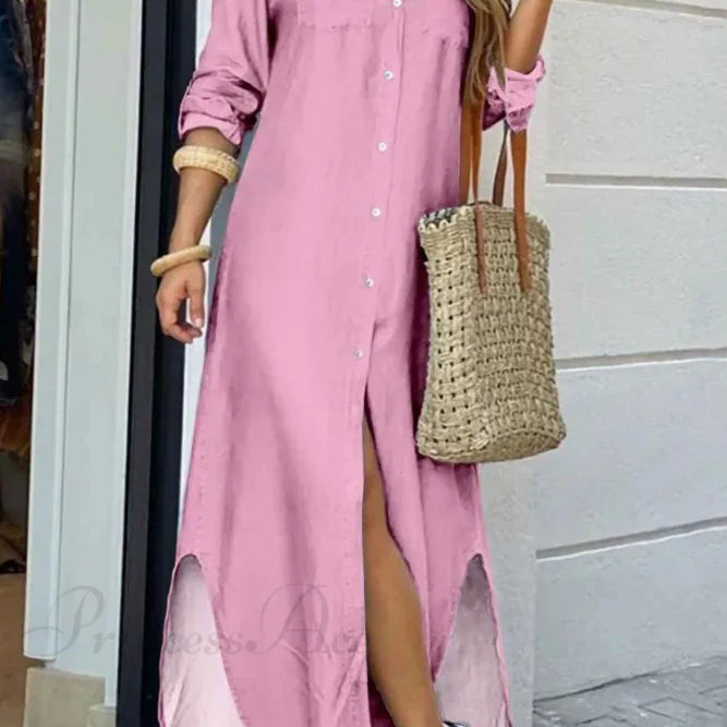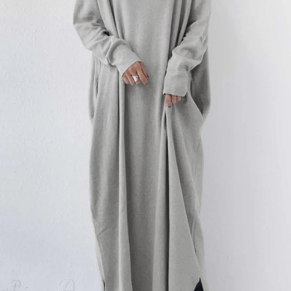 Abito midi con spacco a maniche lunghe e scollo rotondo