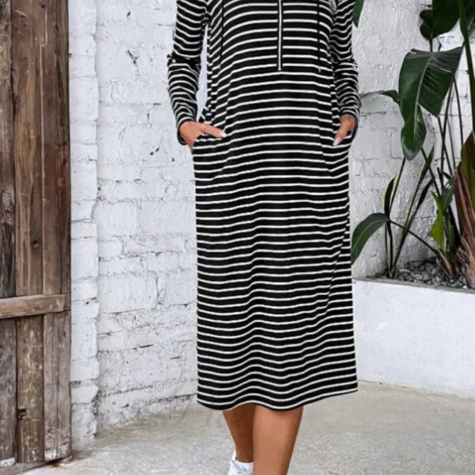 Abito con cappuccio a maniche lunghe e righe