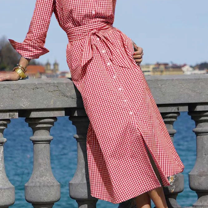 Abito scozzese con cintura in vita