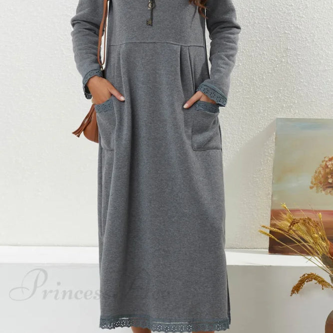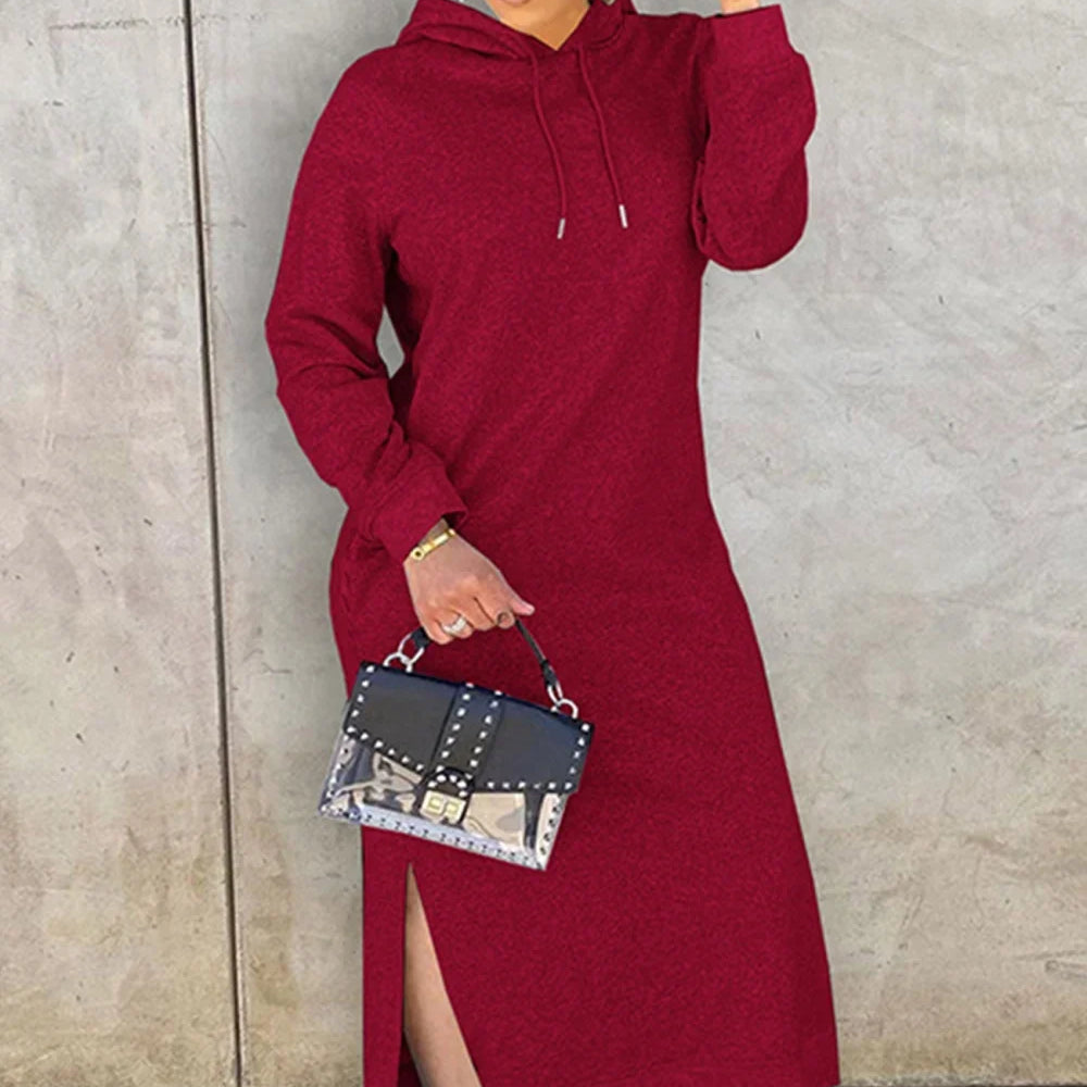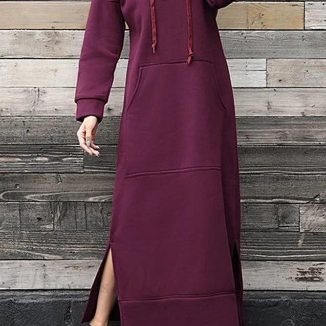 Abito con cappuccio e spacchi sull'orlo con tasche