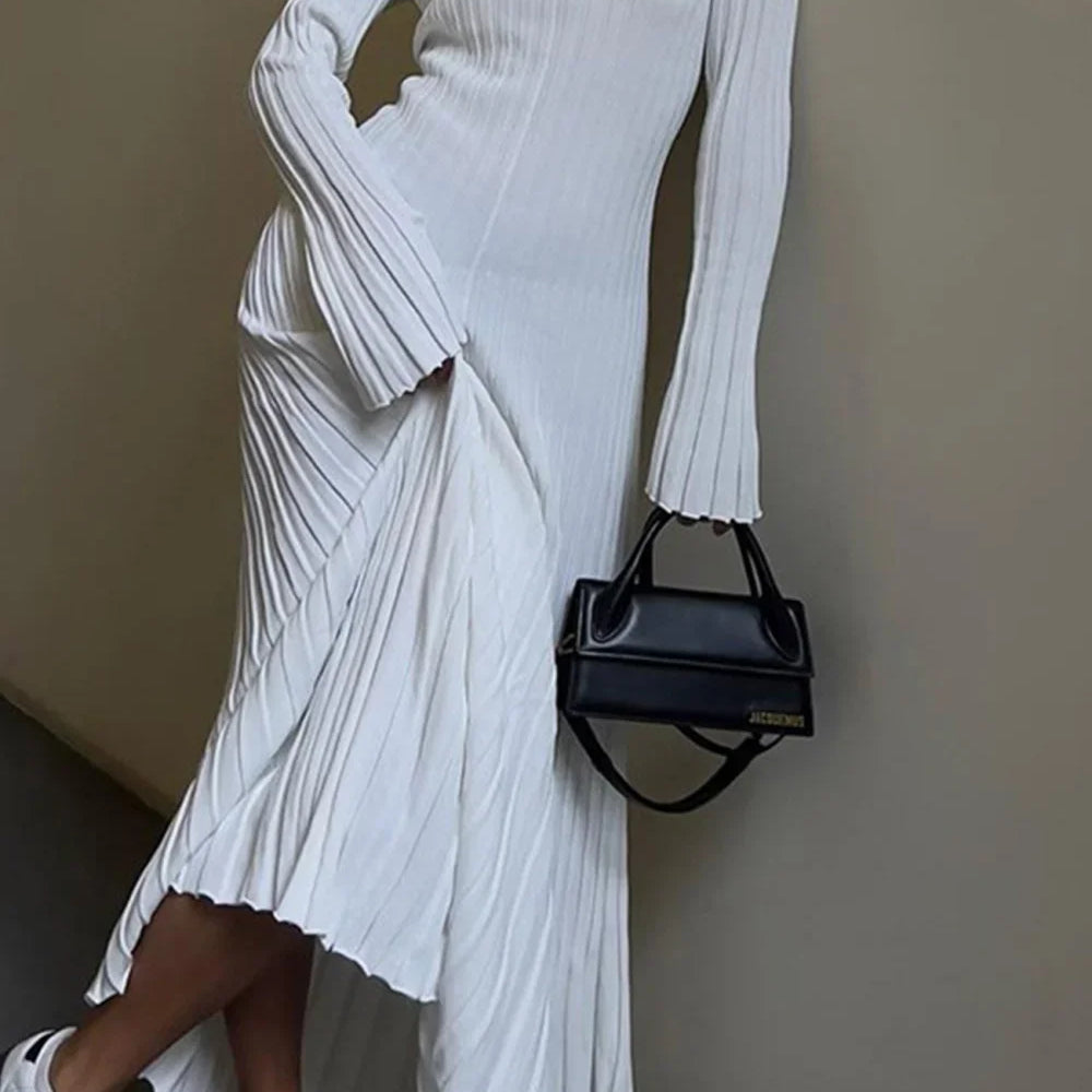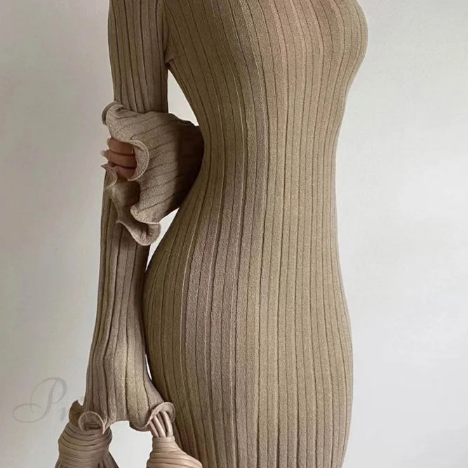 Abito in maglia a coste con maniche lunghe svasate e design senza schienale