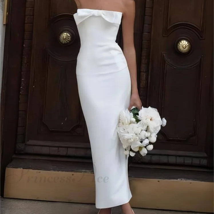Abito midi elegante senza spalline con fiocco