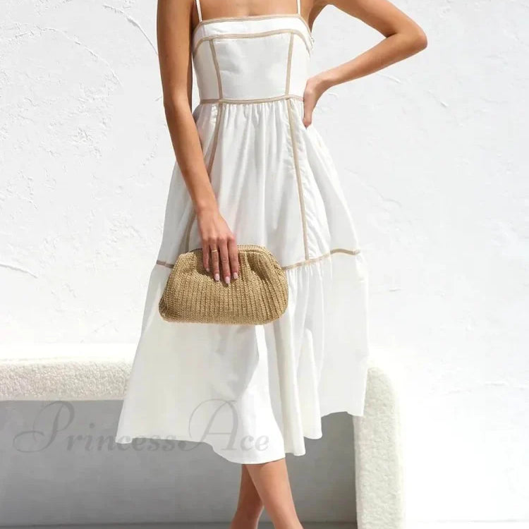 Abito midi con spalline regolabili e finiture in contrasto colore