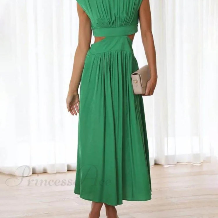 Abito midi da vacanza con tasche e vita tagliata