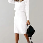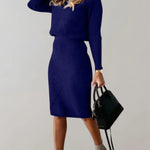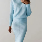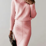 Completo due pezzi da donna – Taglio aderente – Maglia a coste – Elegante dolcevita