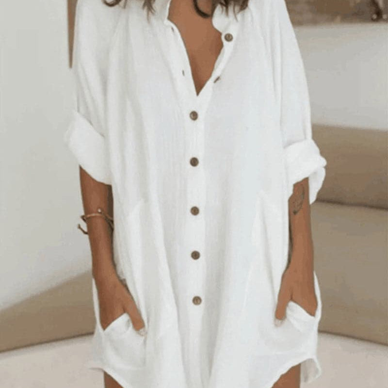 Julia - Abito da donna con scollo a V e maniche a 3/4 - Abito casual estivo