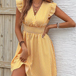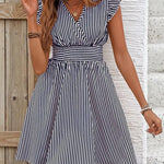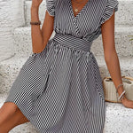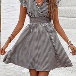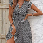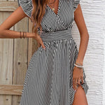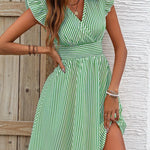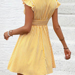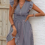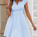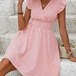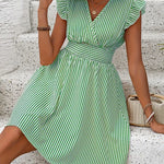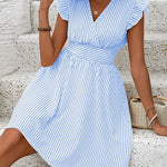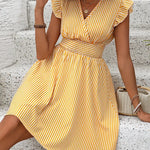 Abito da donna - Scollo incrociato - Maniche a balze - Vita aderente - Gonna svasata