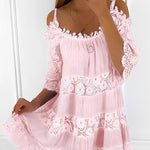 Laja - Nuovo mini abito bohémien con scollo rotondo da donna