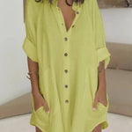 Realizzato con il miglior tessuto leggero, il nostro abito bianco con bottoni garantisce una vestibilità traspirante, perfetta per le giornate di sole o per una serata rilassata. L'abito presenta una silhouette ampia, che ti offre ampia libertà di movimento con grazia e sicurezza.