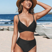 Bikini da donna – Set a vita alta – Top con scollo a V – Tessuto elasticizzato traspirante