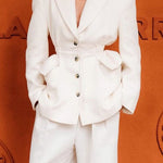 Blazer bianco con scollo a V e cintura in vita
