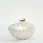 Borsa da sera in acrilico a forma di uovo, con perle e conchiglie