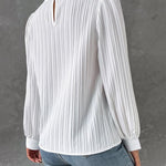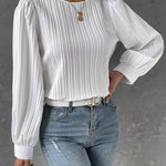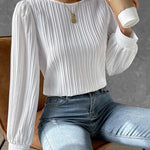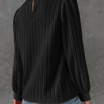Il nostro elegante top blusa con maniche a sbuffo e delicati dettagli plissettati offre una silhouette classica con un tocco moderno. Il design a scollo rotondo e il taglio leggermente aderente valorizzano ogni figura e garantiscono un look chic e professionale. Perfetta per l'ufficio o per le occasioni formali, questa blusa può essere facilmente abbinata a pantaloni o gonne. Un capo versatile che può essere indossato sia di giorno che di sera per aggiungere un tocco elegante a qualsiasi outfit.