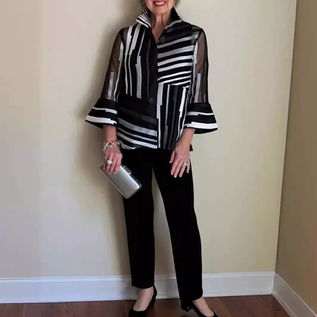 Camicetta da donna – Vestibilità rilassata – Maniche lunghe svasate – Voile leggero a righe