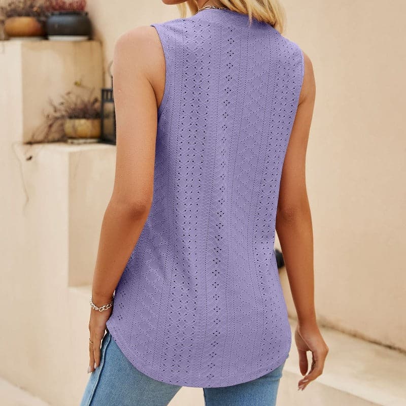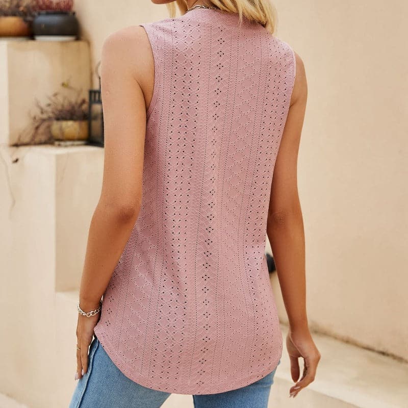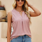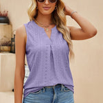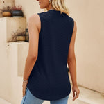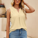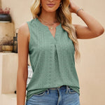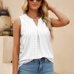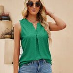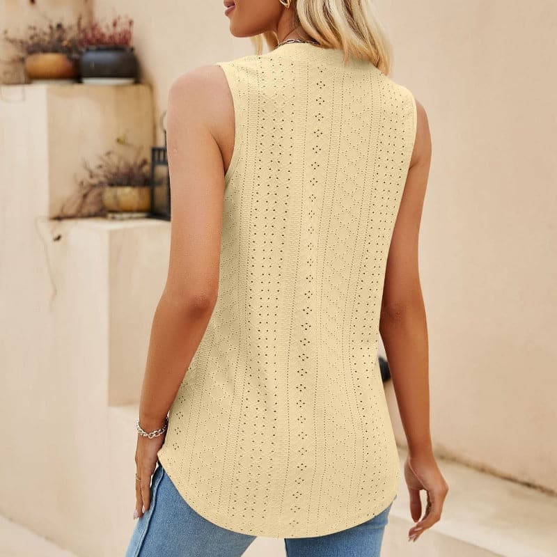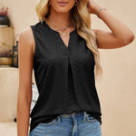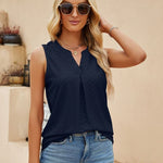 Abbraccia un'eleganza disinvolta con la nostra elegante blusa senza maniche. Pensata per la donna moderna che apprezza sia la comodità che lo stile, questa blusa presenta una raffinata scollatura a V completata da una delicata piega sul davanti, aggiungendo un tocco di raffinatezza al tuo look quotidiano.