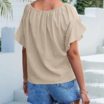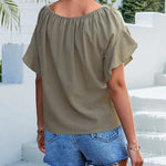 Abbraccia il perfetto mix di comfort e stile con la nostra blusa boho-chic con laccetto sul davanti. Realizzata in tessuto morbido e traspirante, questa blusa è un capo essenziale per il guardaroba estivo, che incarna una grazia naturale. Lo scollo rotondo e le maniche corte a palloncino creano una silhouette lusinghiera, mentre l'esclusivo design con laccetto sul davanti aggiunge un tocco artigianale, consentendo una vestibilità personalizzabile. Abbinata a classici shorts in denim, questa blusa cattura lo spirito dell'estate con un fascino bohémien rilassato, ideale per le giornate in spiaggia, le uscite informali o i pigri pomeriggi al sole. Completa il look con un cappello di paglia e gioielli a strati per un look spensierato e baciato dal sole, tanto intramontabile quanto di tendenza. Acquista ora per dichiarare la tua serena raffinatezza.