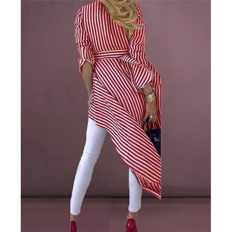Rinnova il tuo guardaroba con l'epitome dell'eleganza: la nostra tunica a righe con cintura. Realizzata in modo impeccabile per creare una silhouette mozzafiato, questa tunica presenta un motivo a righe senza tempo che emana un fascino giocoso ma sofisticato. Il design con vita stretta offre una vestibilità su misura che valorizza la tua figura, aggiungendo un tocco di eleganza al tuo look.