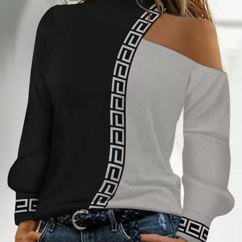 Top da donna - Spalle scoperte - Scollatura asimmetrica - Motivo geometrico - Chic e confortevole