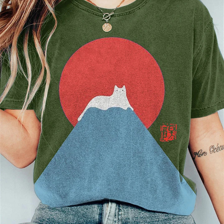 T-shirt da donna - Scollo tondo - Maniche corte - Vestibilità ampia - Stampa grafica di gatto