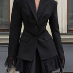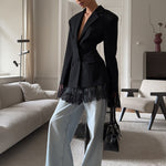 Blazer morbido con vita stretta e maniche lunghe in pizzo nero