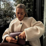 Cappotto a maniche lunghe con revers in lana d'agnello